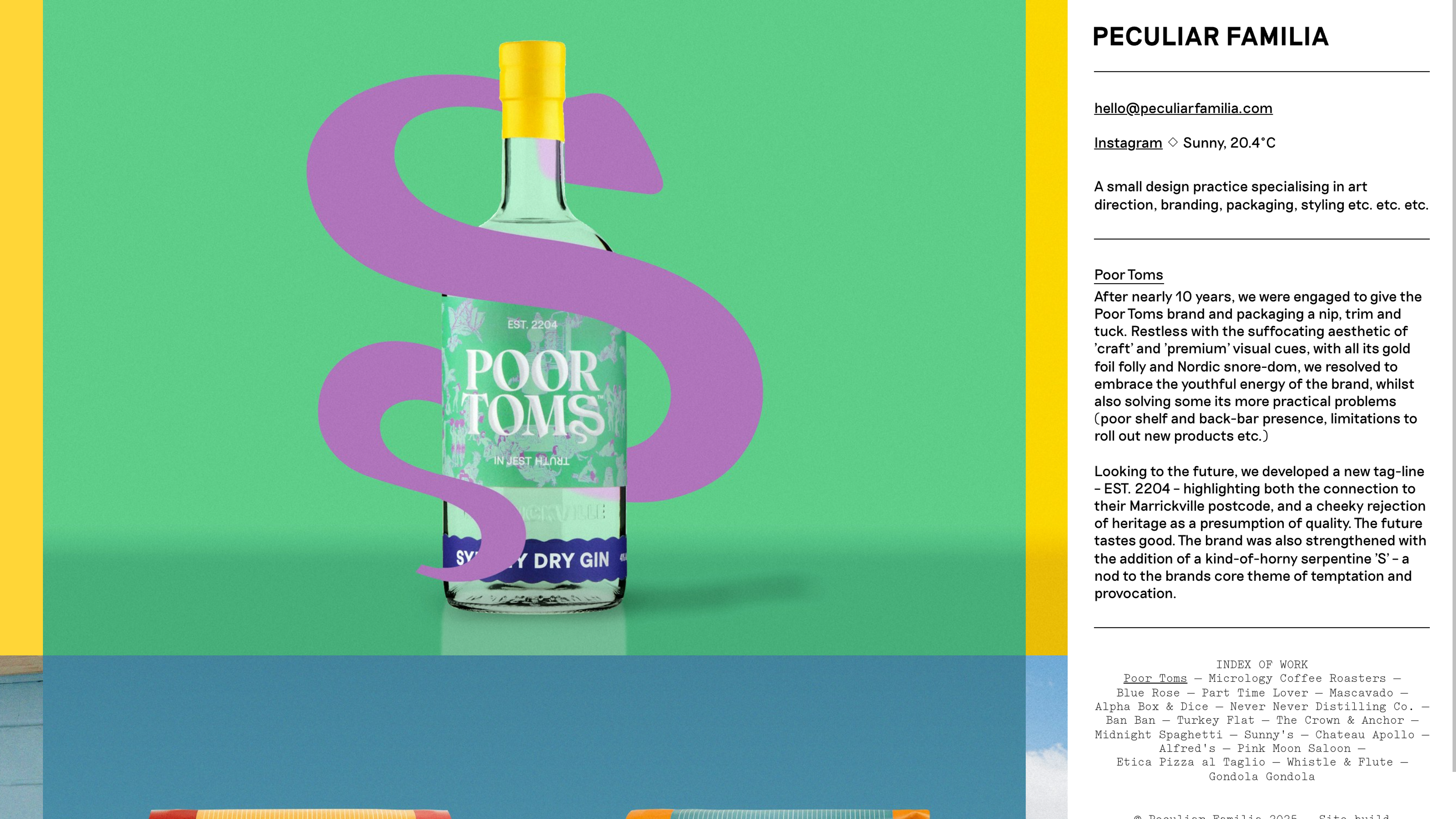 An interactive portfolio of works for Peculiar Familia — a small design practice specialising in art direction, branding, packaging, styling, etc.