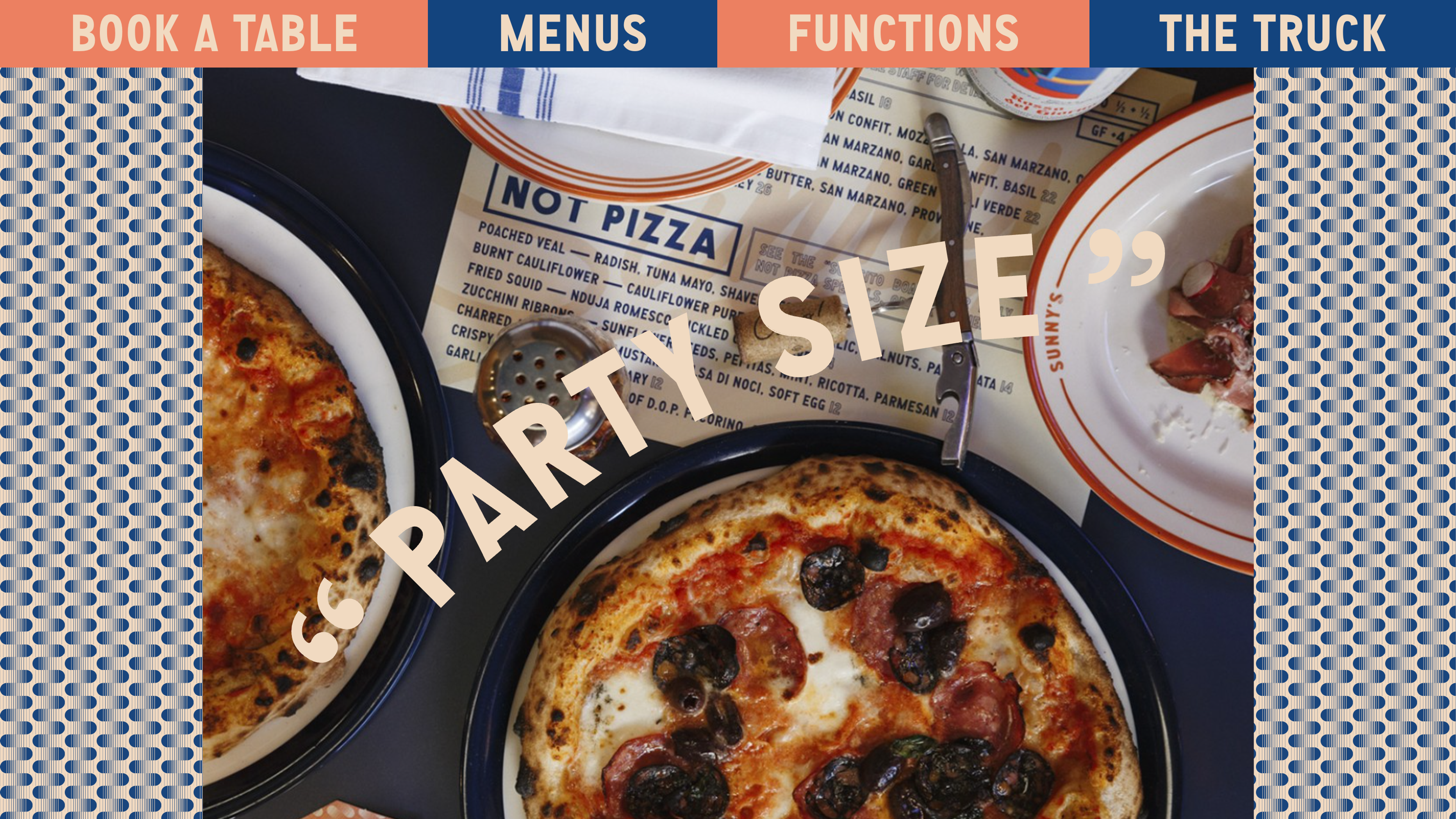 Website development for Adelaide disco pizza venue Sunny's. Design by Peculiar Familia.